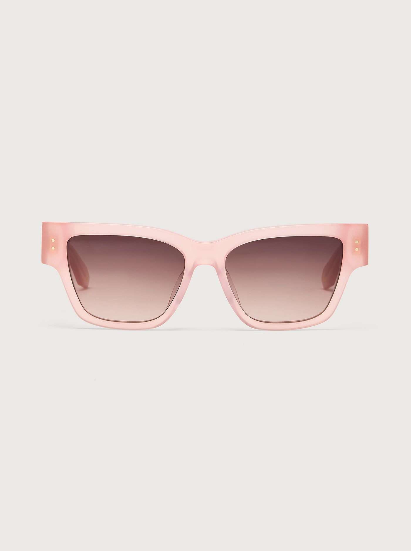 - Classic square frame glasses with soft curves and subtle rivet detailing